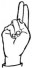 На ћирилици написано МОМИРКА ПЕЈЧИНОВИЋ састоји се из 17 слова [?]. Исписано ћириличном једноручном азбуком за глувонеме: